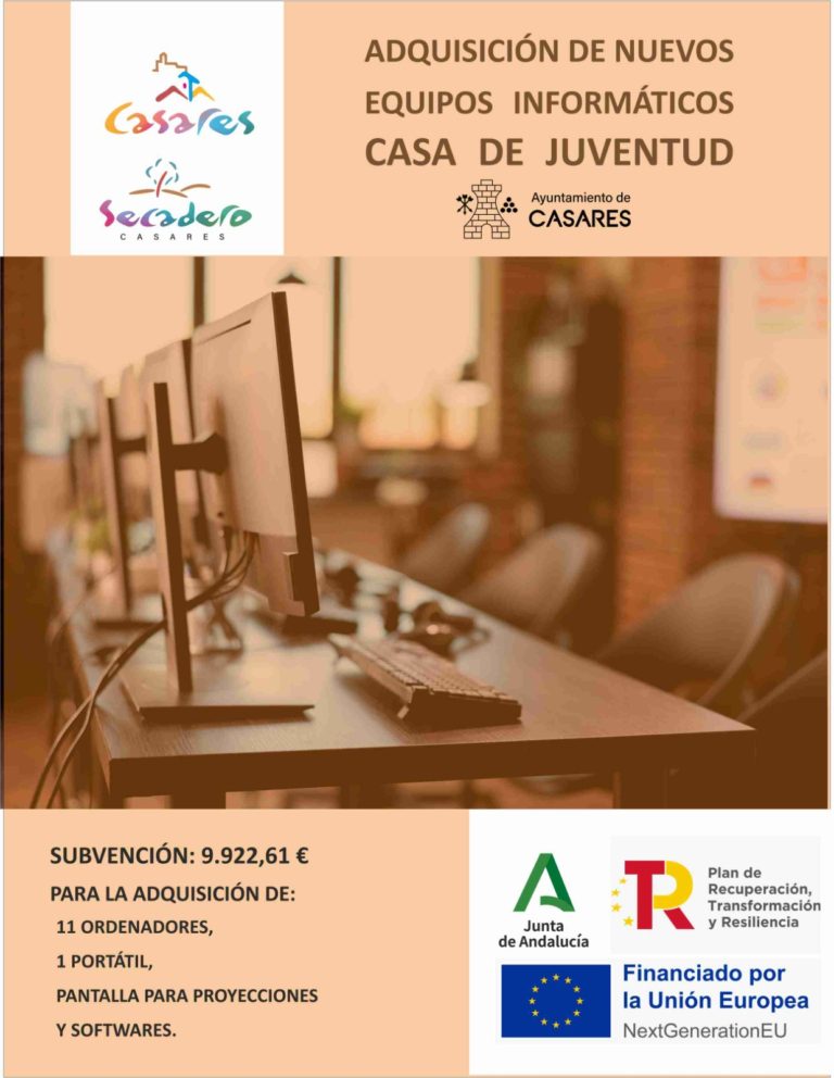 El Ayuntamiento de Casares ejecutará la renovación de los equipos informáticos de las Casas de la Juventud ubicadas en Casares y Secadero mediante una subvención de 9.922,61 euros procedente del Plan de Recuperación, Transformación y Resiliencia, financiado por la Unión Europea a través de NextGenerationEU.
