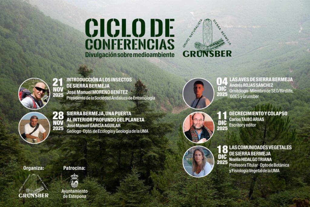 Grunsber ha programado un ciclo de cinco conferencias y una ruta de interpretación geológica en Estepona durante el último trimestre de 2025. La iniciativa tiene como objetivo divulgar conocimientos sobre Sierra Bermeja y cuestiones medioambientales a través de distintas disciplinas científicas.